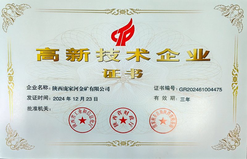 喜報!陜西龐家河金礦榮獲2024年度高新技術(shù)企業(yè)認(rèn)證